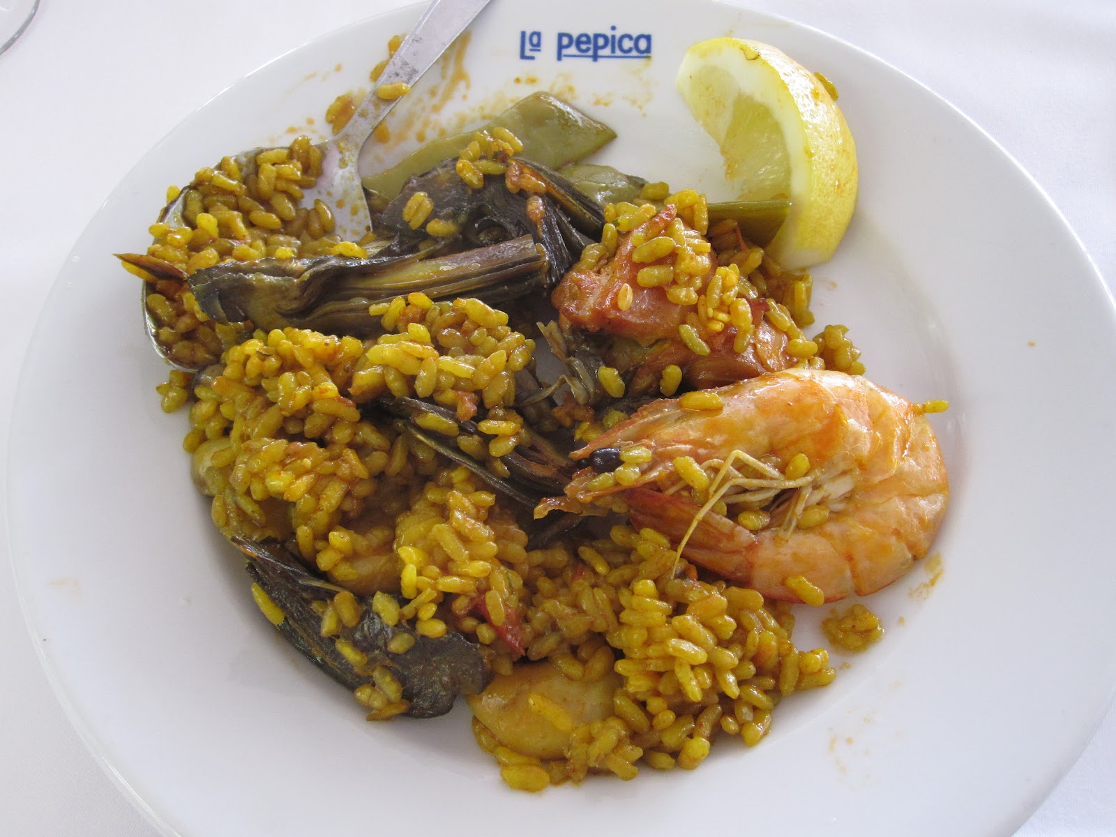 Paella is a traditional Spanish dish that originated in Valencia, Spain. There are three main types of paella; seafood, mixed, and vegetable. The seafood paella is made with clams, mussles, fish, and shrimp mixed with rice. The mixed paella is a combination of chicken and seafood with rice. And finally, the vegetable is a mix of local vegetables and rice. The paella is prepared in what is called a paellera over an open flame, usually of pine and orange tree wood. The specific wood type is said to infuse flavors into the paella as it cooks.